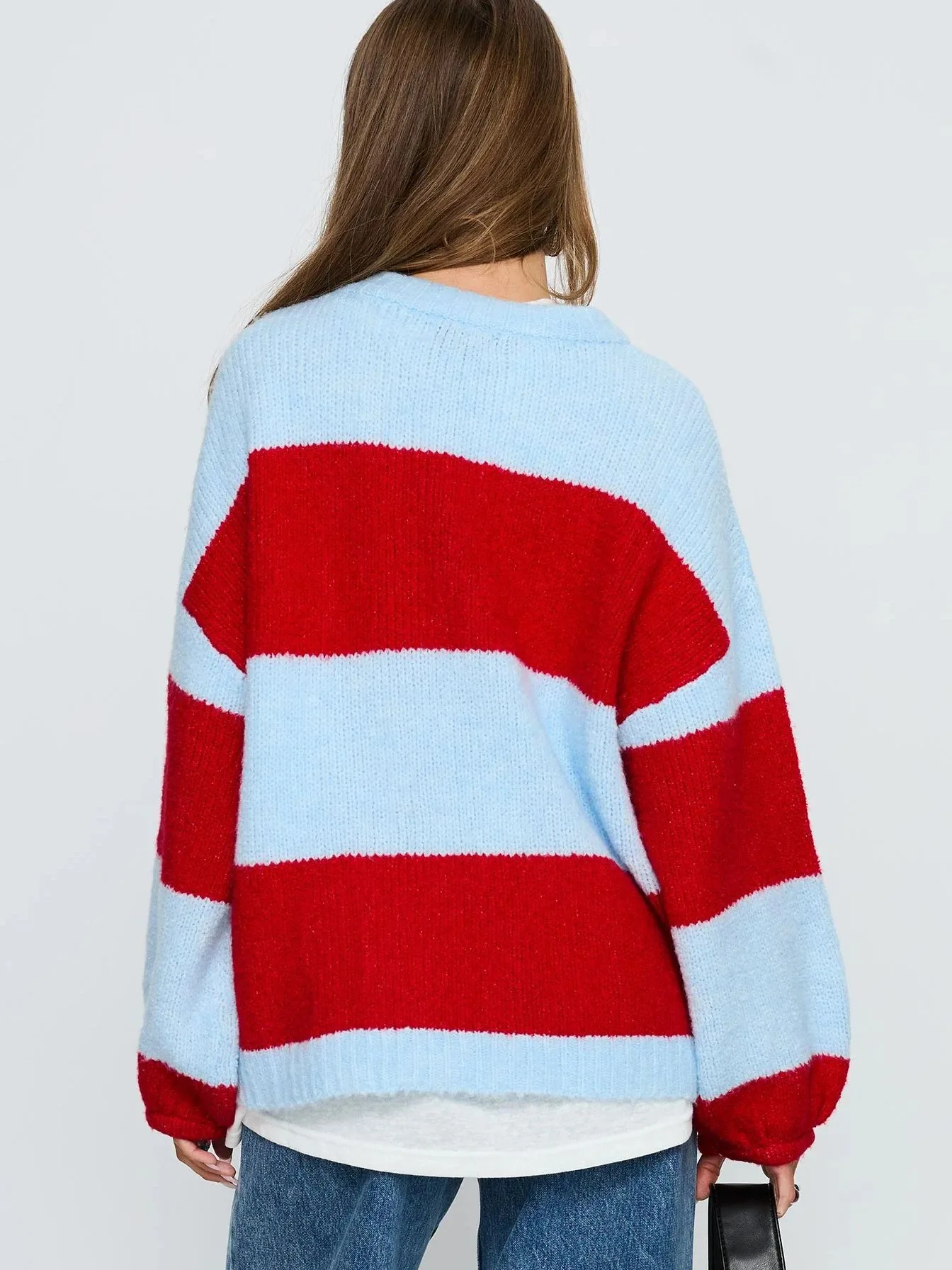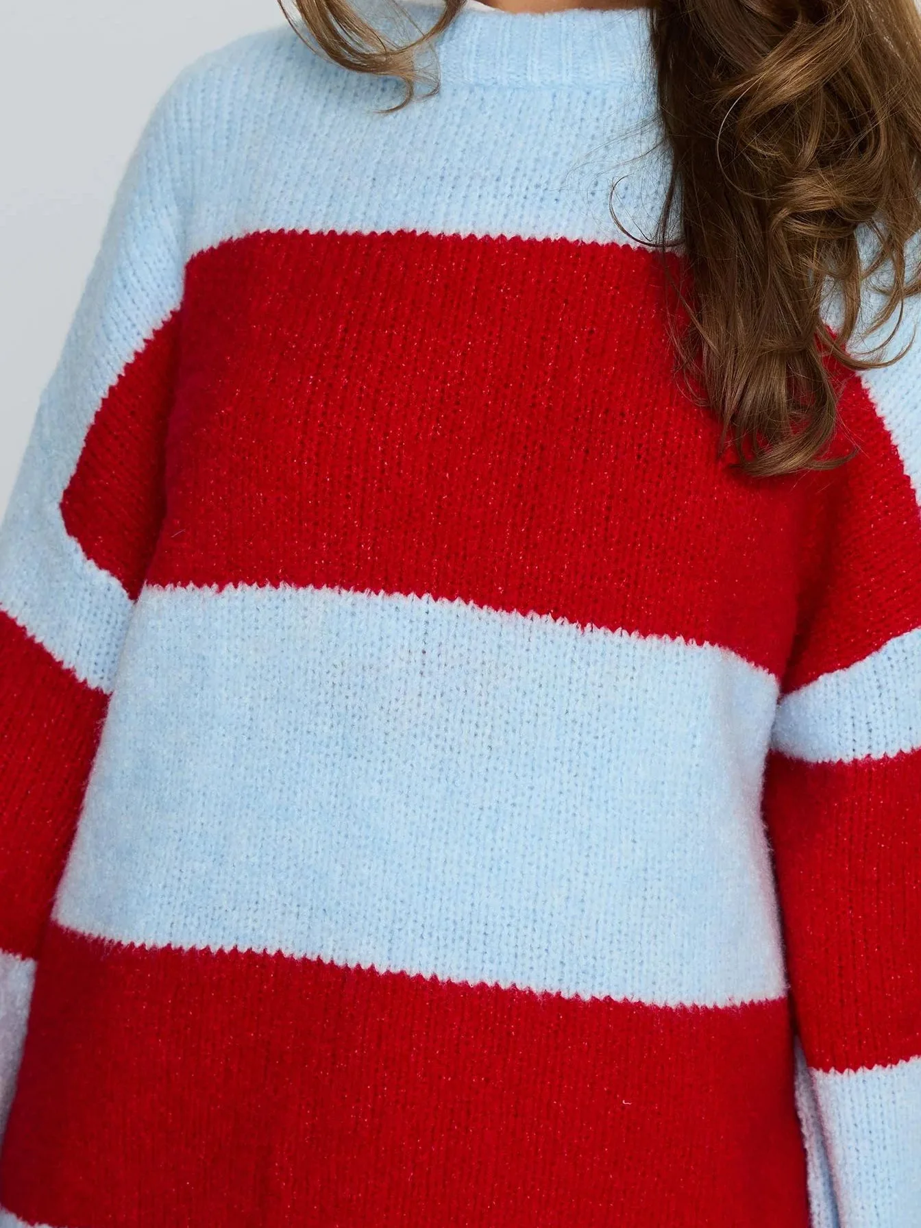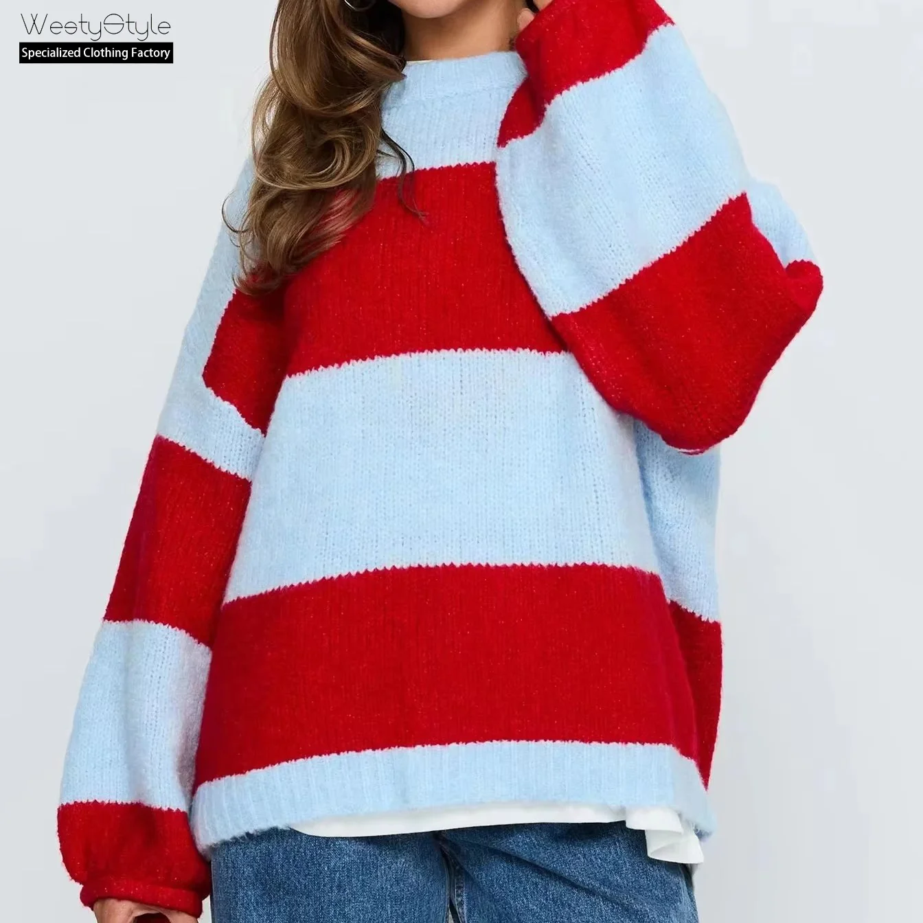 European American Women's Loose Crewneck Pullover Sweater Autumn Winter Collection Long Knitted Striped Anti-Pilling Front